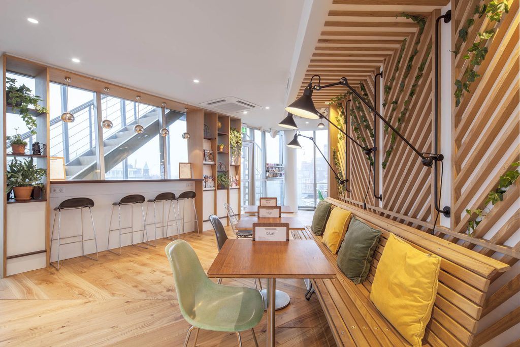 Studio Vredeveld maakte een volledig nieuw interieurontwerp voor deze succesvolle horecazaak. Blue was op zoek naar een uiterst efficiënt maar meer sfeervol ontwerp. Kernwoorden waren: sfeervoller, warmer, gezelliger, speelser, persoonlijker, tijdloos.