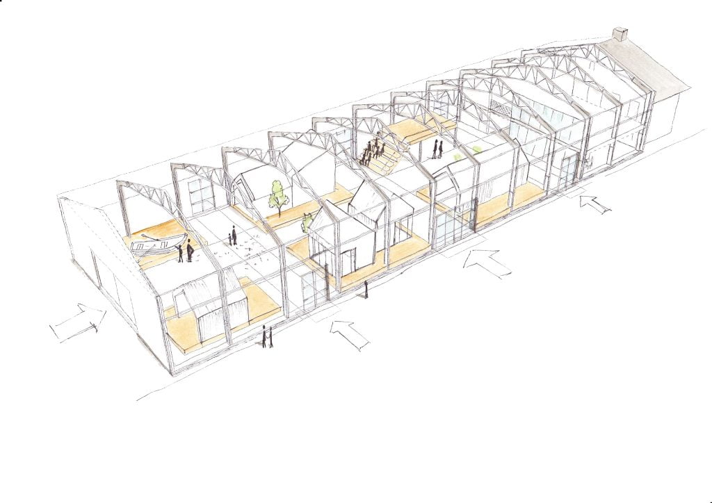 De Gemeente Harlingen wil twee buitendijkse loodsen functioneel maken voor de toekomst. Studio Vredeveld kreeg de opdracht om een conceptontwerp te maken, waarmee één van de loodsen als creatieve ontmoetingsplek kan dienen. In samenwerking met Carex heeft STUVR na zorgvuldige analyse een conceptontwerp gemaakt dat de basis vormt voor toekomstige bouwkundige aanpassingen aan de loods.